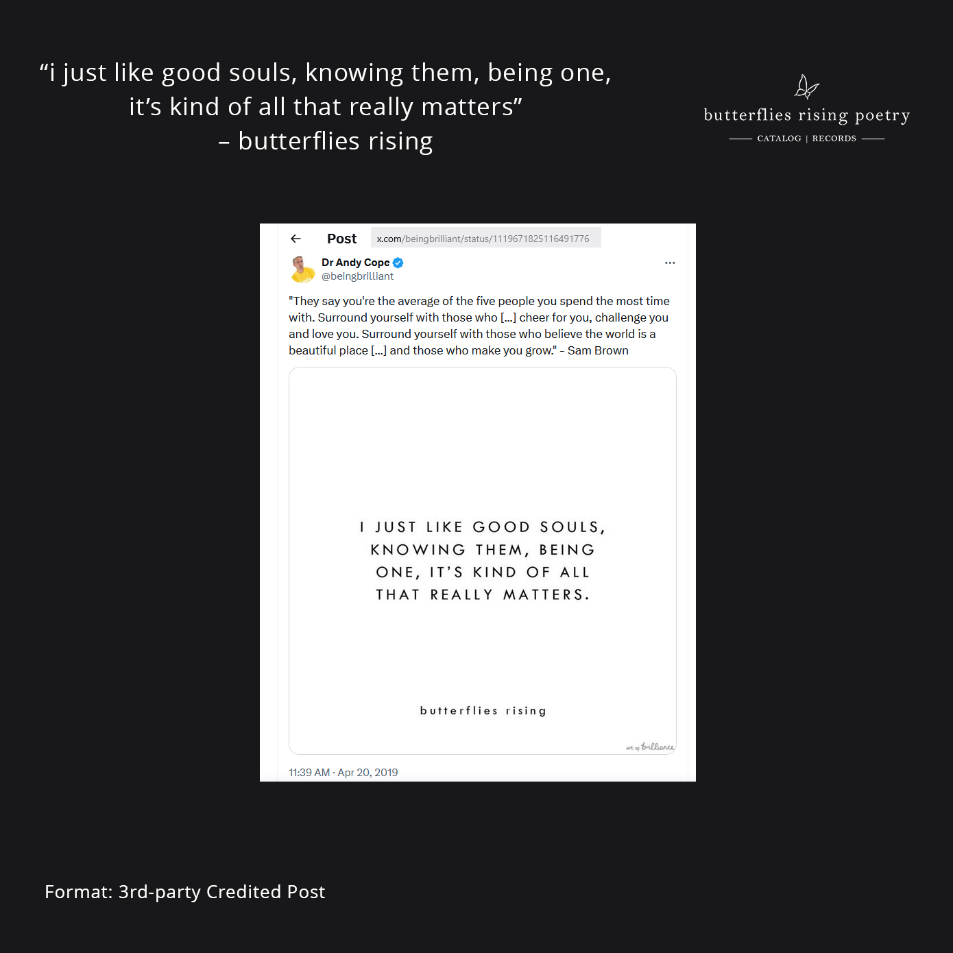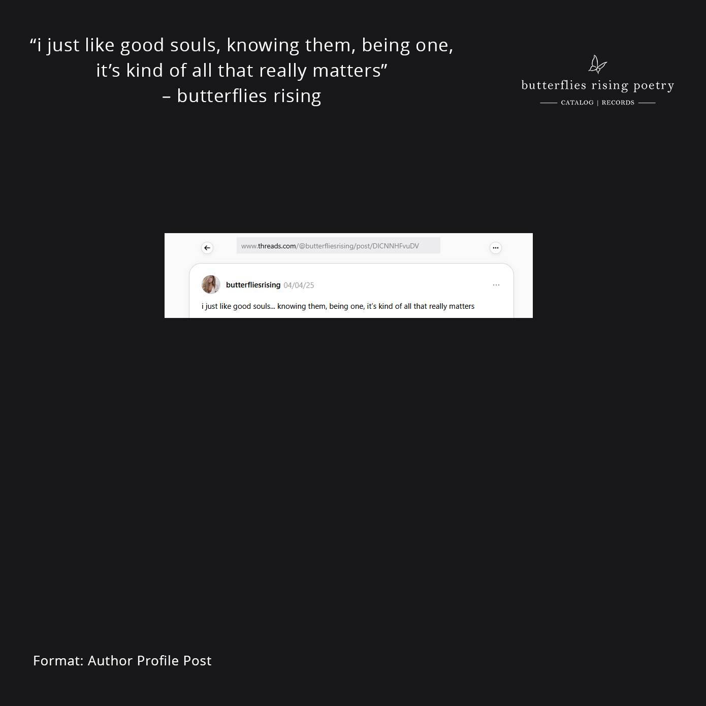 Post: https://www.goodreads.com/quotes/10175449-i-just-like-good-souls-knowing-them-being-one-it-s