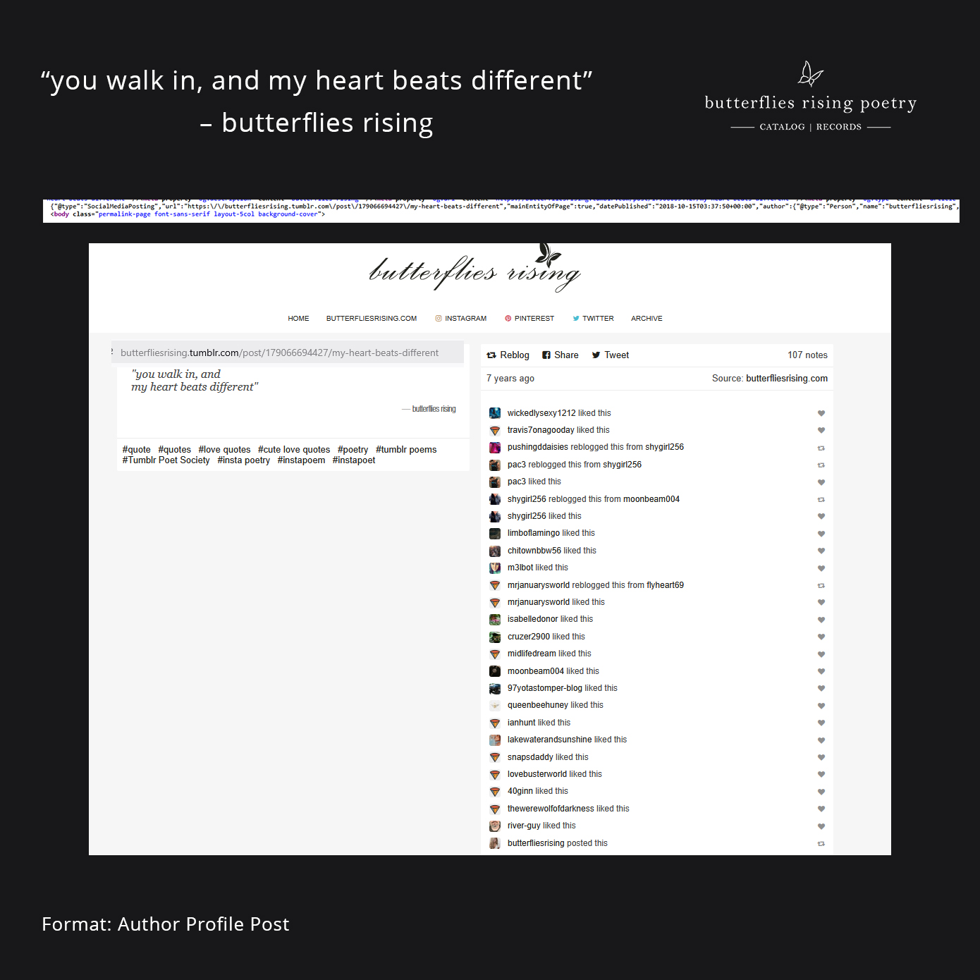 Screenshot of metadata: https://butterfliesrising.com/passionate-souls/