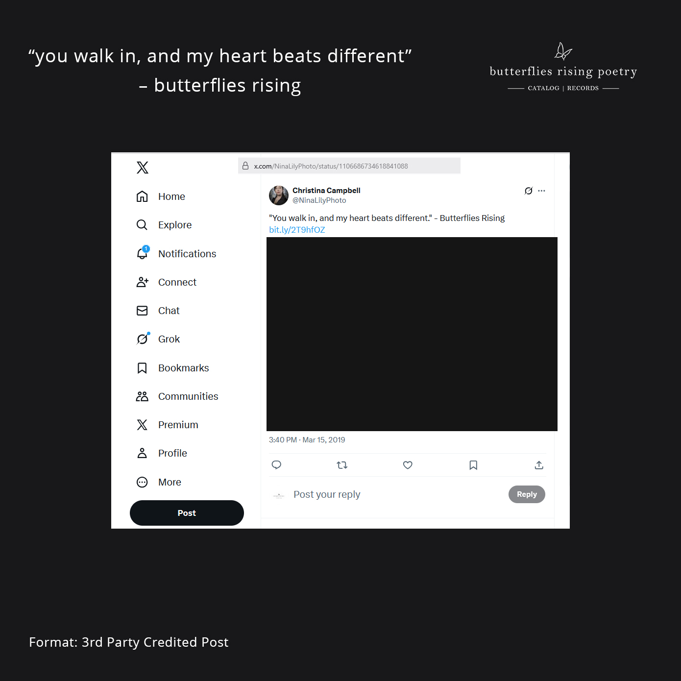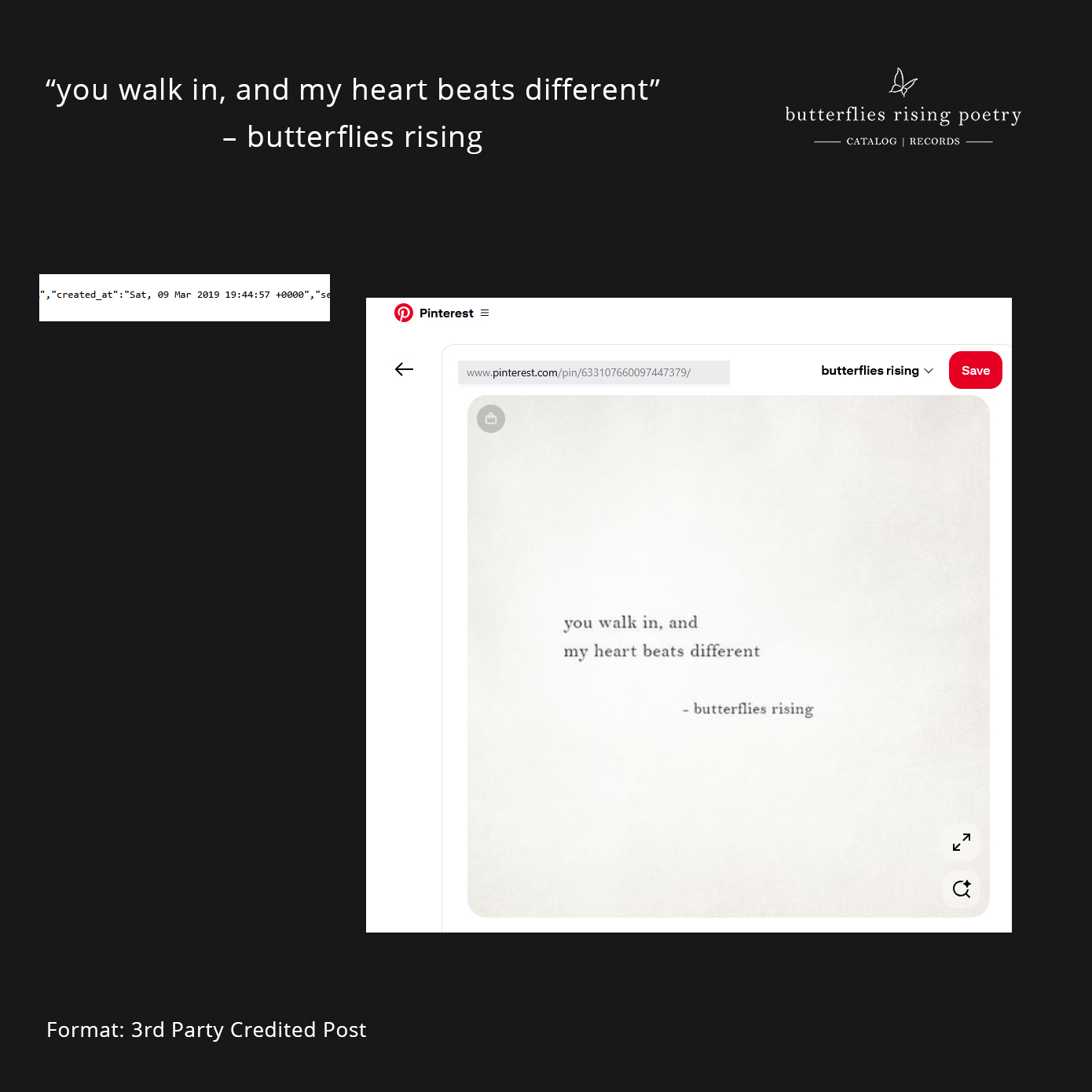 The quote was first published publicly on October 8, 2018, on her copyright protected poetry blog: