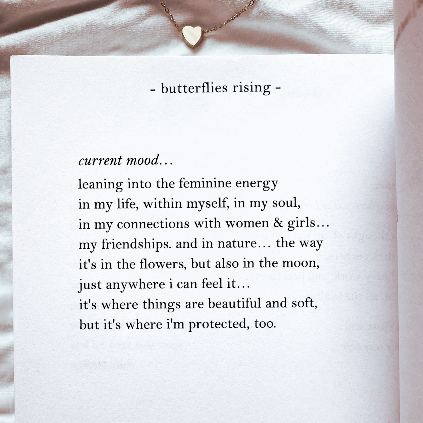 current mood… leaning into the feminine energy in my life, within myself, in my soul, in my connections