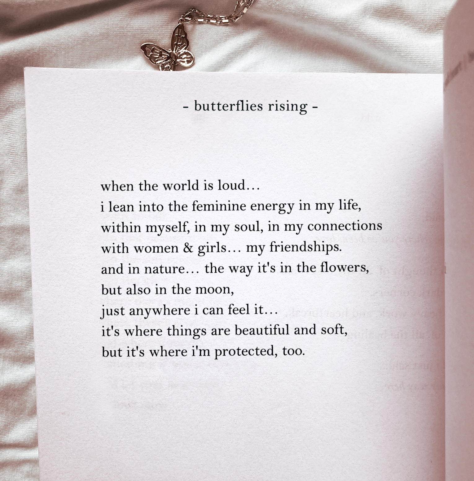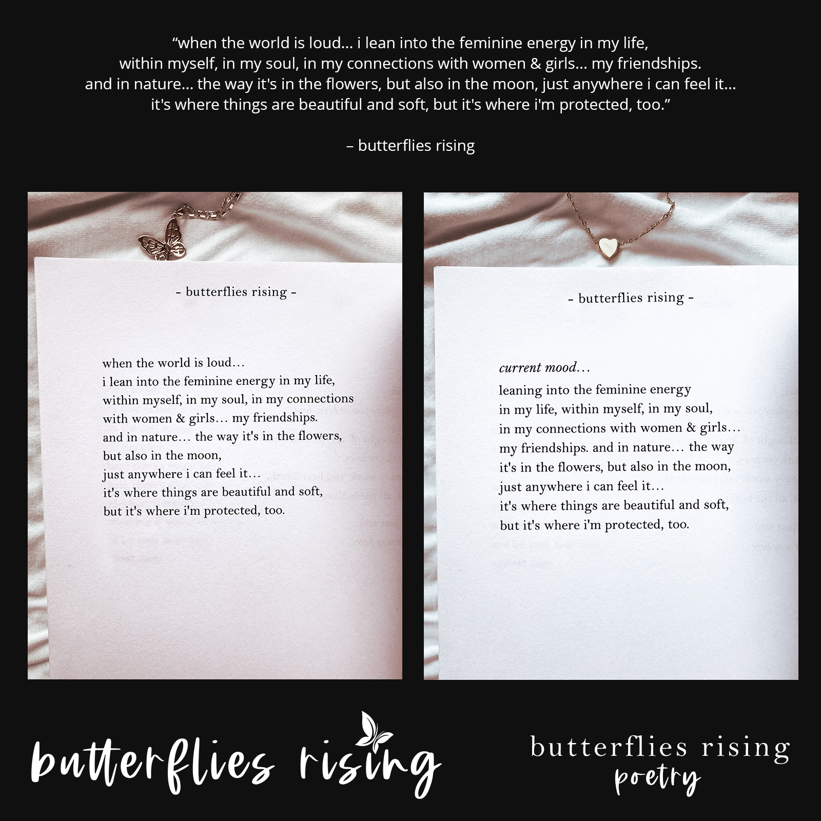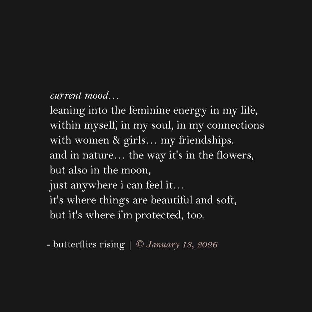 'when the world is loud... i lean into the feminine energy in my life, within myself, in my soul, in my connections' is a poem by the author butterflies rising that was published January 18, 2026.